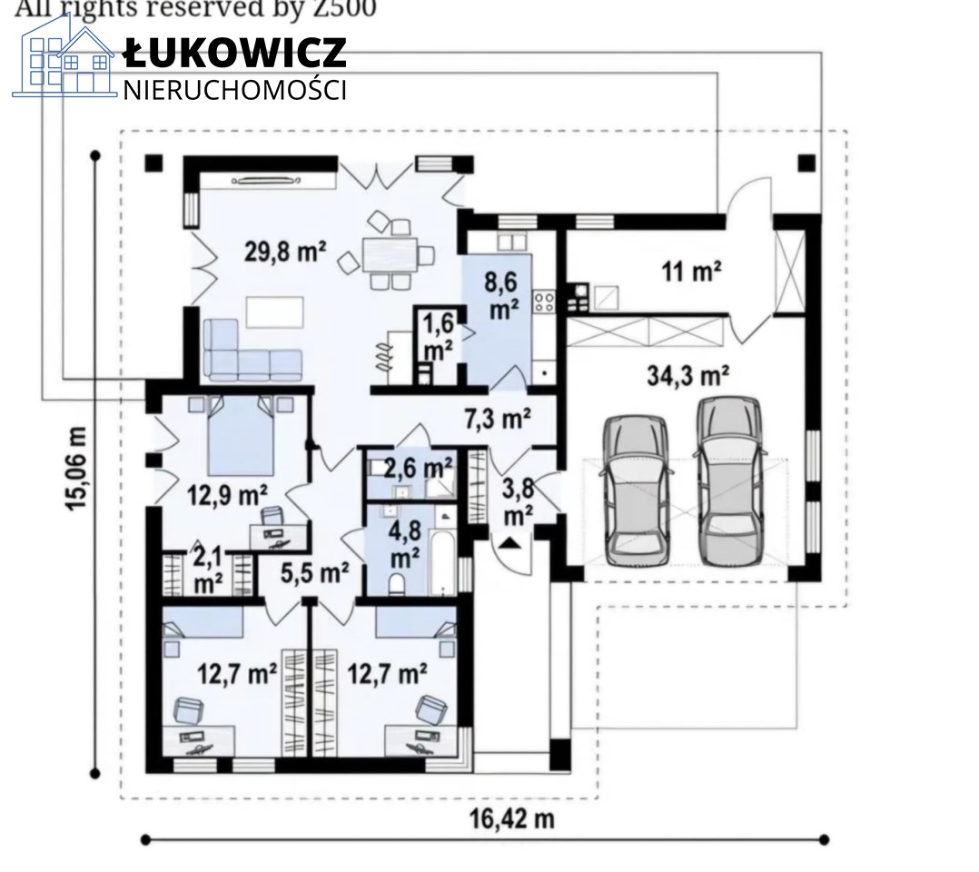 - Garaż dwu-stanowiskowy 34,3 m²