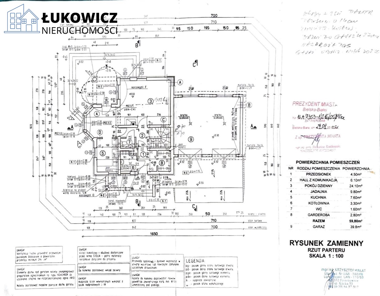 Nieruchomość o powierzchni użytkowej 113,70 m2 mieści się na działce o powierzchni 1400 m2, a w jej skład wchodzi: