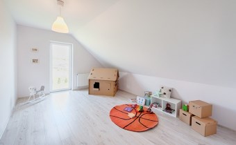 Na poddaszu wydzielono strefę wypoczynkową, w której znajdują się: