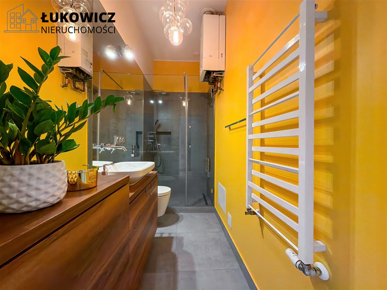 Całe mieszkanie ogrzewane jest poprzez piec 2-funkcyjny.