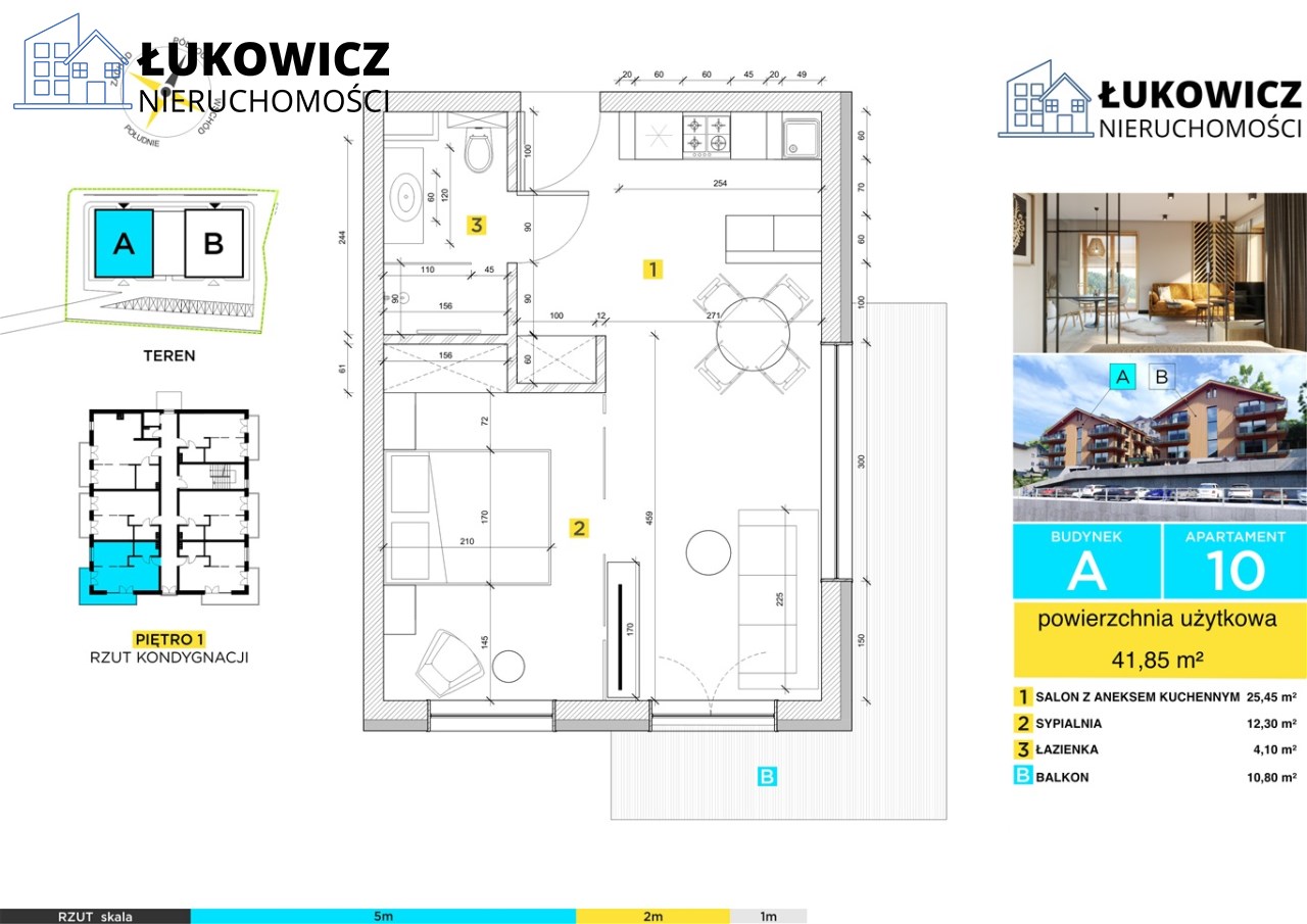 Oferowana nieruchomość o powierzchni 41,85 m2 składa się z: