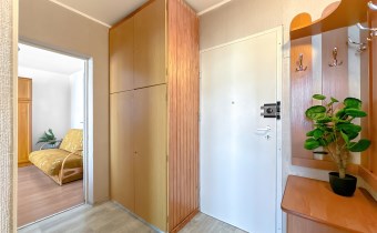 - W przedpokoju znajdziemy szafkę, wieszak na odzież wierzchnią, pojemną szafę oraz lustro.